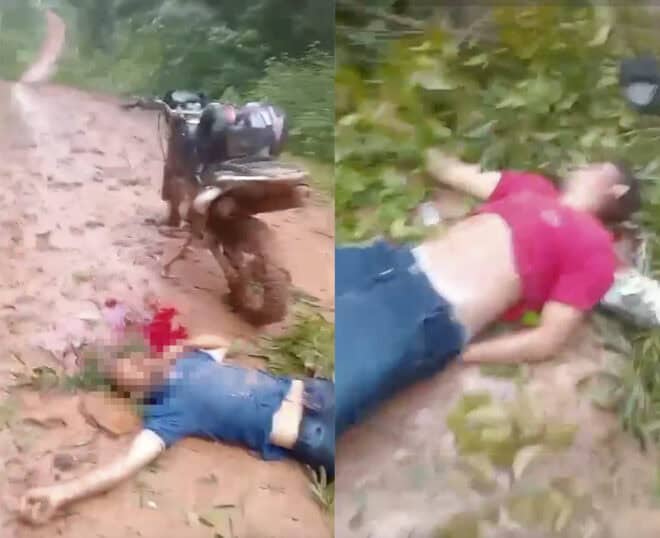 Vítimas estavam consertando moto quando foram surpreendidas; uma apresentava fratura exposta no crânio, e a outra sangrava pelo nariz; resgate é dificultado por local de difícil acesso
