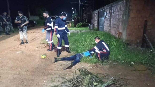 Um assaltante não identificado foi morto com vários tiros em via pública, na noite desta segunda-feira (19), após realizar um arrastão ao ônibus do transporte coletivo do Conjunto Habitacional Cidade do Povo. O bandido foi morto na rua Algodoeiro, no Residencial Rosa Linda, na região do Segundo Distrito de Rio Branco.