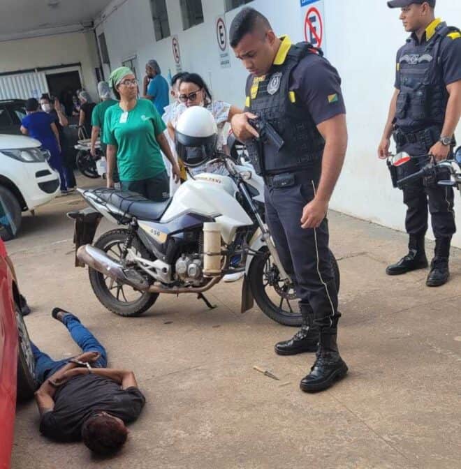 Um assaltante ainda não identificado foi preso acusado de roubar populares nas proximidades do pronto-socorro de Rio Branco na tarde de sábado (25). A prisão aconteceu no pátio do PS, localizado no bairro do Bosque, em Rio Branco.