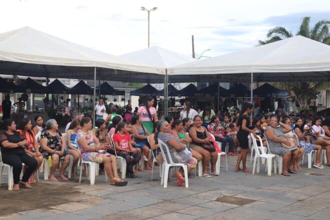 Um show ao vivo animou a tarde, criando um clima de festa e descontração para as homenageadas. A organização preparou a praça com decoração especial, oferecendo um ambiente acolhedor para as famílias.