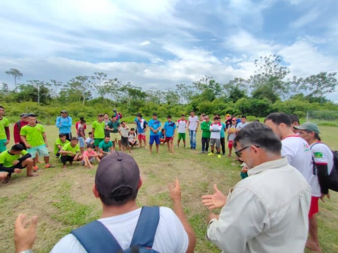 O scretário de Educação Elias Marques esteve presente e o coordenador de Esporte Sandro também estiveram presentes, além de indígenas das aldeias Nova União, Três Cachoeiras, Ananai, Liberdade, Nova Vida, Maria Monteza, São Lourenço, Morada nova e Apuir.