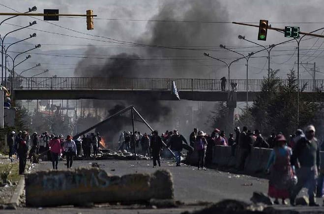 Manifestantes nesta terça, dia 19, nas mediações de Senkata, El Alto. Foto: Freddy Barragán / Página Siete