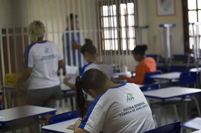 Além de adquirirem conhecimento, as detentas também podem reduzir suas penas lendo livros dentro do presídio, explica a servidora da Divisão de Educação Básica e Profissional, Margarete Sales. “Elas fazem a leitura mensal de uma obra, e essa leitura dá direito a quatro dias remidos, 48 dias no ano. Aqui na unidade feminina, todas que têm minimamente condição de ler participam, as que não dominam o código escrito, a gente inseriu na escola, na turma de alfabetização”, relata.
