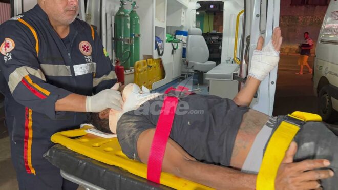 Na madrugada deste domingo (7), um grave acidente deixou David Marques de Oliveira, de 40 anos, gravemente ferido no bairro Floresta, em Rio Branco. O incidente ocorreu quando ele tentava atravessar a rua Rio de Janeiro.