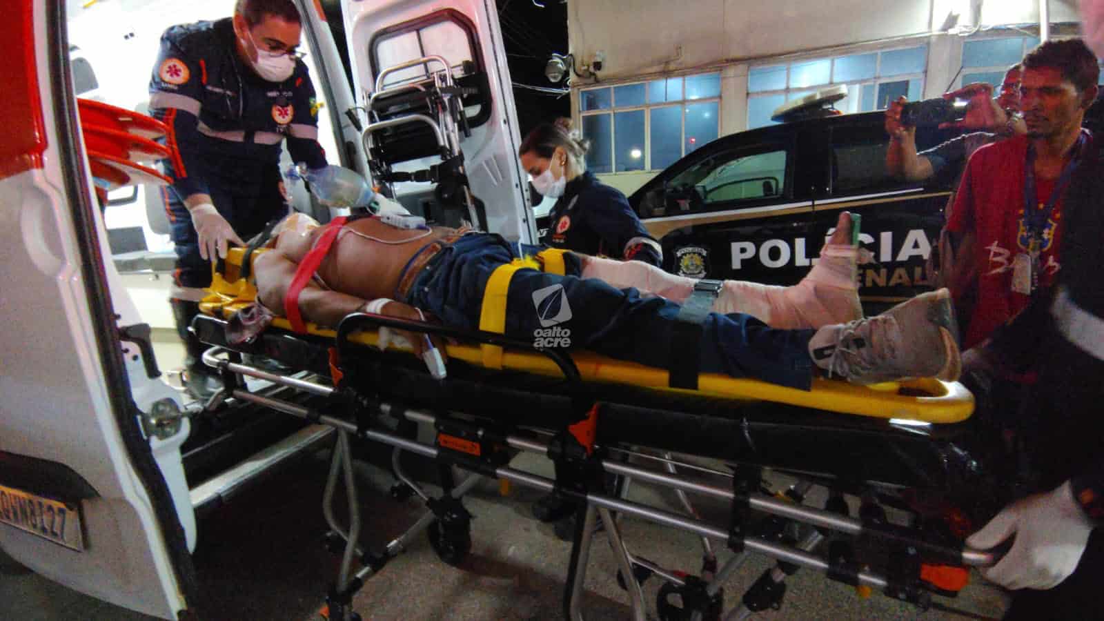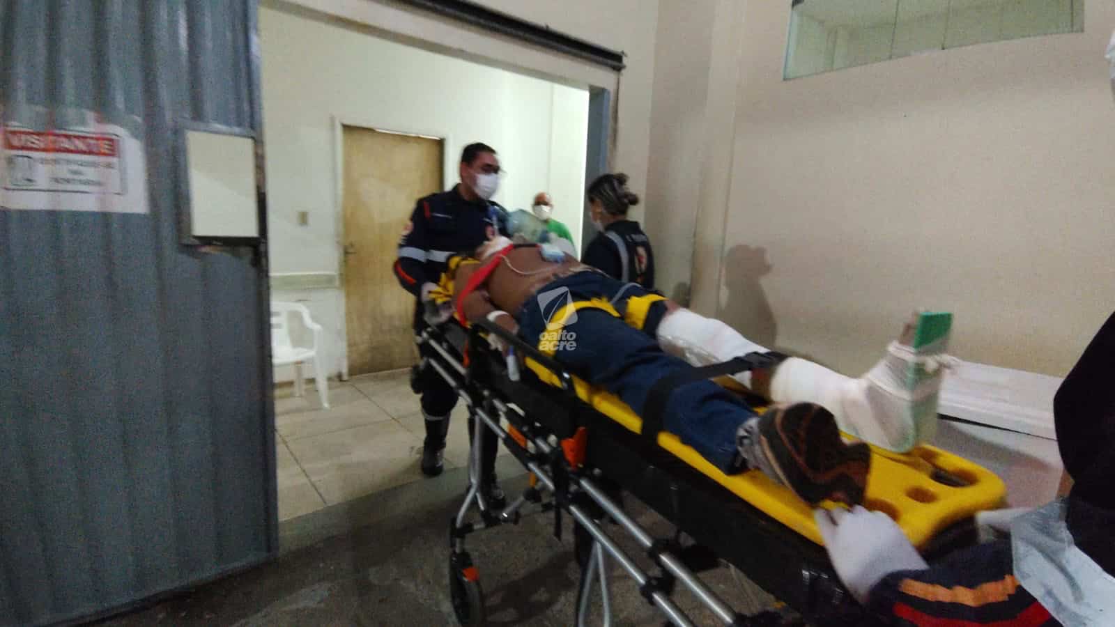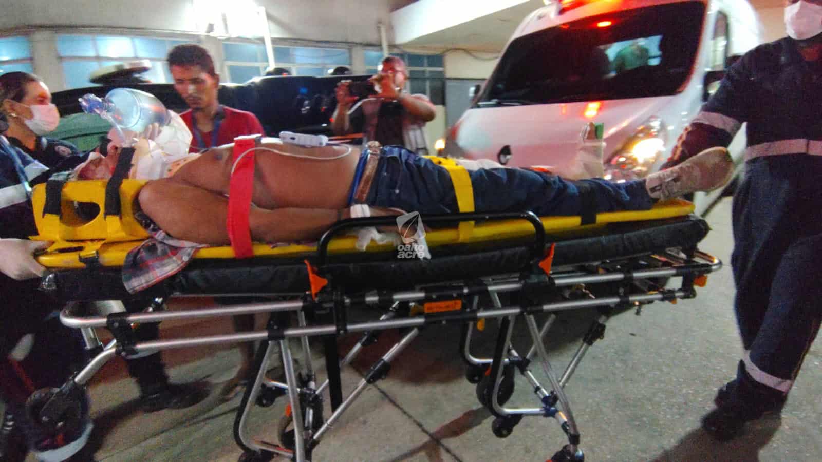João sofreu traumatismo craniano encefálico (TCE) grave e fratura exposta na perna esquerda. Ele foi entubado ainda no local e encaminhado ao Pronto-Socorro de Rio Branco em estado gravíssimo, sendo direcionado ao setor de traumatologia para avaliação especializada.