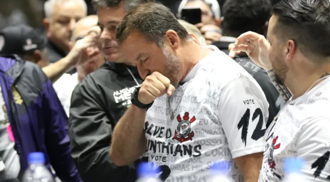 Augusto Melo foi eleito neste sábado (25) presidente do Corinthians para o triênio 2024/2026. Em votação realizada no Parque São Jorge, o candidato da oposição derrotou André Luiz de Oliveira, conhecido como André Negão, da chapa da situação e apoiado pelo ex-presidente Andrés Sánchez.