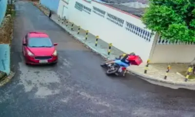 Imagens de uma câmera de segurança mostram um motoboy se acidentando em uma esquina do bairro Castelo Branco, em Rio Branco, na tarde de quinta-feira (3)....