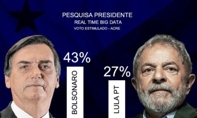 O Instituto Real Time Big Data, contratado pela TV Gazeta/Rede Record, divulgou também a opinião dos acreanos em relação à disputa presidencial para o ano que...