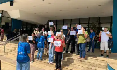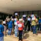 Dezenas de trabalhadores da Educação protestam em frente à Assembleia Legislativa do Acre (Aleac) nesta quarta-feira, 15, cobrando recomposição salarial e a restruturação da tabela do...