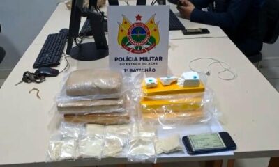 Eliel Gama Félix, de 20 anos, foi detido com skunk e pasta base de cocaína; entorpecente seria levado para Sena Madureira. Policiais Militares da Força Tática...