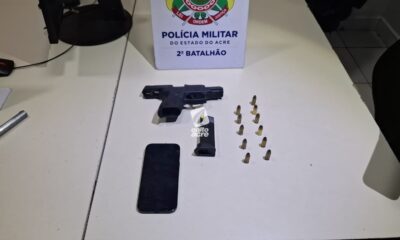 Arma foi encontrada dentro de veículo que tocava música com apologia a facção criminosa Uma ação rápida da Força Tática do 2º Batalhão da Polícia Militar...