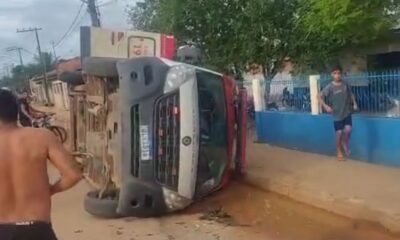 Acidente ocorreu em frente à Secretaria Municipal de Saúde; trânsito ficou parcialmente bloqueado Uma ambulância tombou no meio da rua após colidir com uma caminhonete na...