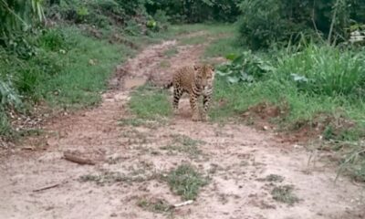 Encontro ocorreu na manhã desta quarta-feira (22) no km 41; animal não demonstrou comportamento agressivo e retornou à mata após ser filmado Um morador de Manoel...