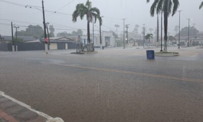 Chuva intensa por mais de 30 minutos na manhã desta terça-feira (2) alagou ruas de Brasiléia, Epitaciolândia e da boliviana Cobija; temperatura, que chegava a 35°C,...