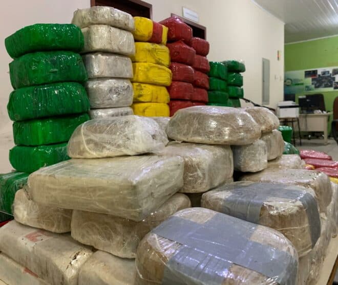 Foi a maior apreensão de pasta base de cocaína na cidade de Feijó ao longo de muitos anos. Parte dos tabletes trazia a inscrição “frágil” numa tentativa de ludibriar os policiais.