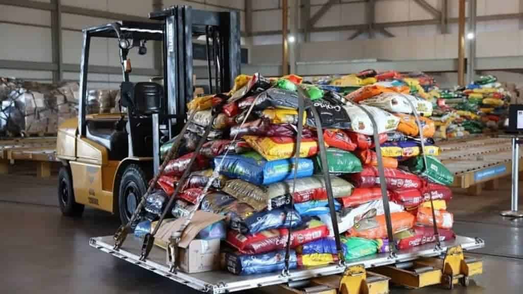 Avião da FAB leva 20 toneladas de ração para pets do RS