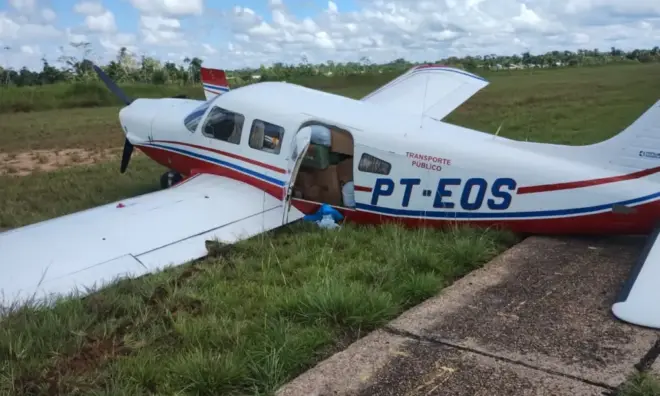 Uma aeronave de pequeno porte que transportava cargas do município de Feijó, no Acre, para Envira, no interior do Amazonas, sofreu uma pane durante o pouso na manhã desta segunda-feira, 9. O incidente ocorreu quando o trem de pouso quebrou no momento em que o avião tocou o solo, fazendo com que a aeronave derrapasse “de peito” até sair da pista e parar em uma área de matagal.