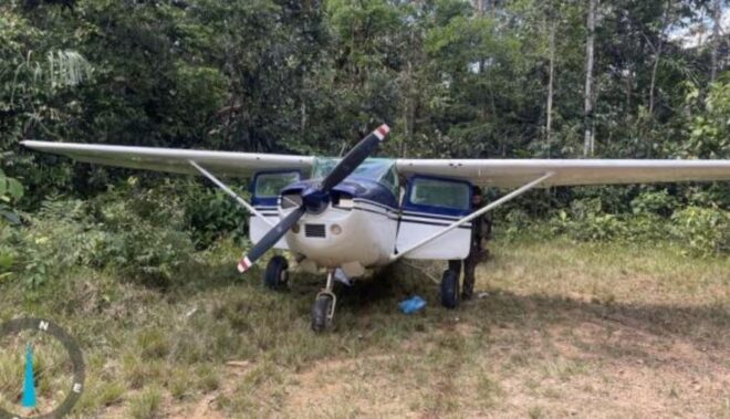 O avião só pousou ao chegar à região de Surucucu, em uma pista clandestina de terra. Quando militares chegaram ao local em um helicóptero, o piloto já havia fugido para a mata.