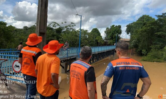 Enquanto isso, o nível do Rio Acre segue subindo rapidamente. De acordo com a medição mais recente da Defesa Civil Municipal, realizada às 15h, o rio atingiu 13,29 metros, se aproximando da cota de alerta, que é de 13,50 metros. A expectativa é de que o rio ultrapasse essa marca ainda hoje.