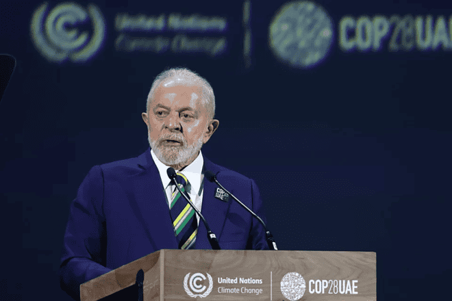 Em discurso na solenidade de abertura da Presidência da COP28, Lula cobrou dos líderes globais o cumprimento de acordos e ações efetivas no combate às mudanças climáticas. O chefe do Executivo também condenou as guerras, o uso de combustíveis fósseis e lembrou a conexão entre o impacto das mudanças climáticas e a desigualdade social.