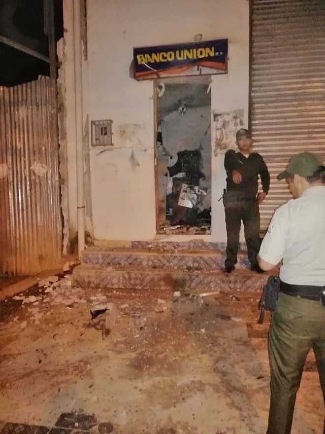 Autoridades de Cobija, estado de Pando/Bolívia, foram acordados por volta das 4 horas da madrugada desta quinta-feira, dia 11, sabendo que um caixa eletrônico do Banco Union, localizado no Bairro Paz Zamora, no km 3, foi mira de bandidos.