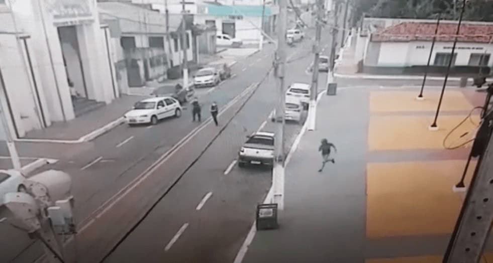 Nas imagens, se percebe que uma funcionária do judiciário estava saindo, quando percebeu o assalto chamou pelos policiais que ainda tentaram abordar a dupla. Mesmo com armas apontadas contra ele e tiros de advertência, os bandidos não sem intimidaram e saíram em fuga para lados diferentes.