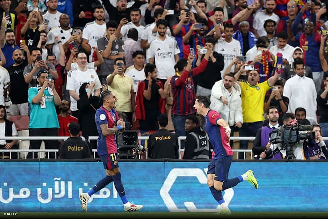O Barcelona atropelou o Real Madrid e conquistou a sua 15ª Supercopa Espanhola. Depois de início rápido dos Merengues, com golaço de Mbappé, o Barça assumiu as rédeas, aproveitou a desorganização dos rivais e marcou quatro vezes na primeira etapa, com destaque à partida de Raphinha. Nos 45 minutos finais, o clube da Catalunha seguiu em cima para marcar mais, mas, depois do primeiro, Szczęsny foi expulso e abriu espaço para uma reação da equipe madrilenha. O segundo gol saiu, mas não passou disso. 5 a 2 para os Culés.