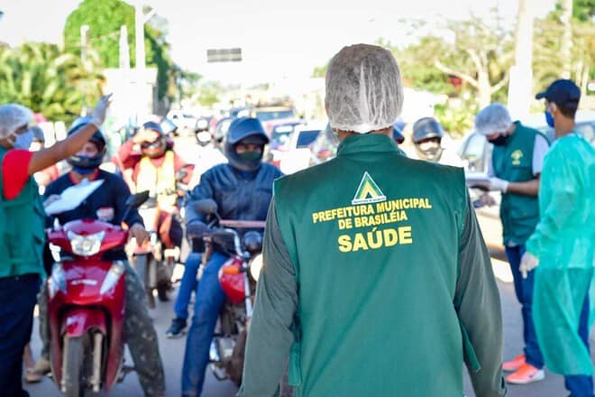 A Prefeitura de Brasileia montou barreira sanitária na via de acesso à cidade, para controlar a entrada de veículos de outras localidades no município. Equipes de saúde, DETRAN, Vigilância Sanitária e Polícia Militar estão fazendo o monitoramento de quem chega a Brasileia, realizando aferição da temperatura corporal e preenchendo um questionário informando o motivo da vinda para a cidade.