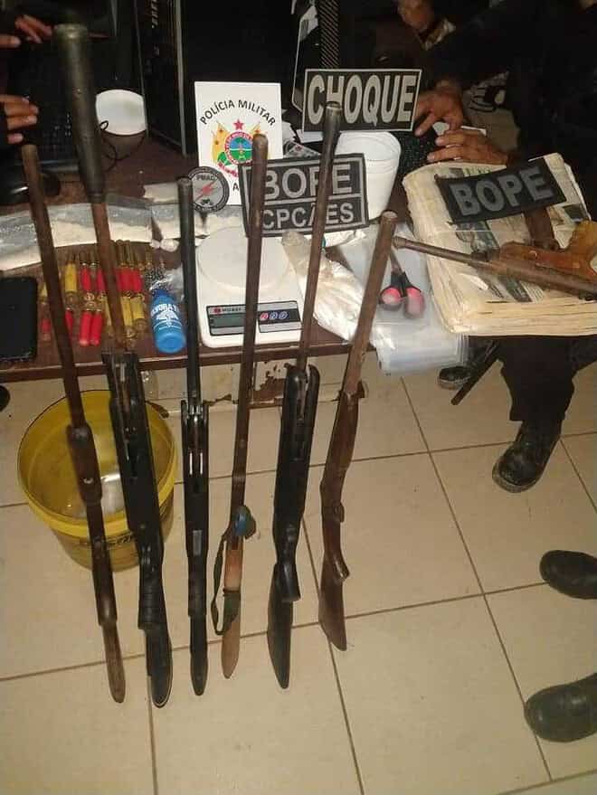 Guarnições da Companhia Choque e Canil, do Batalhão de Operações Especiais (BOPE), apreenderam na madrugada desta segunda-feira, 27, armas de fogo, drogas e munições, na Vila do V, município de Porto Acre. Na ação duas pessoas foram presas.