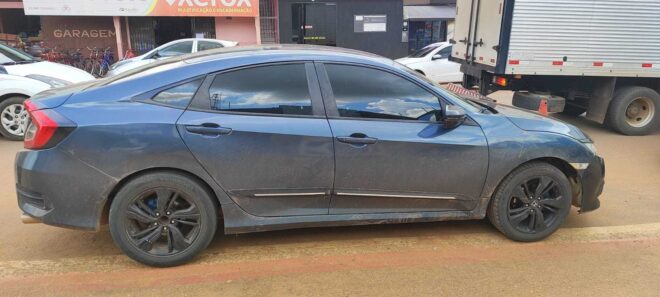 Durante abordagens no trevo foi parado um veículo Honda/Civic e ao realizar vistoria nos itens de identificação veicular, como placas, numeração de chassi, dentre outros, os militares perceberam inconsistência nas informações.