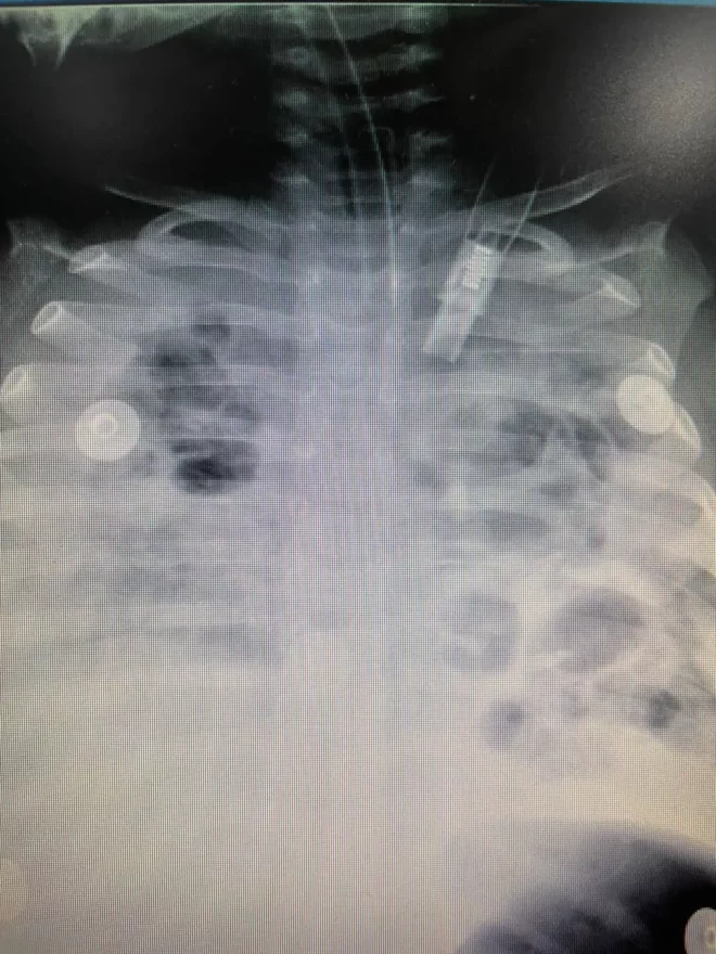 Raio-X mostra como estava o pulmão do menino que morreu com síndrome respiratória grave — Foto: Arquivo pessoal