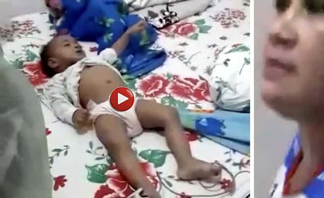 Em um vídeo divulgado pela família, os profissionais do Samu aparecem tentando reanimar a criança. Uma tia reclama da falta de assistência no hospital.