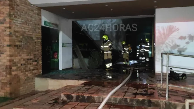 Os Bombeiros informaram ao ac24horas que o incêndio aconteceu na sala de exposições que fica na entrada do prédio. O local que possui muito material acrílico e estava tomado de fumaça o que rapidamente tornaria um incêndio de grande proporção, caso não tivessem agido rápido, por conter na sala objetos de fácil combustão.