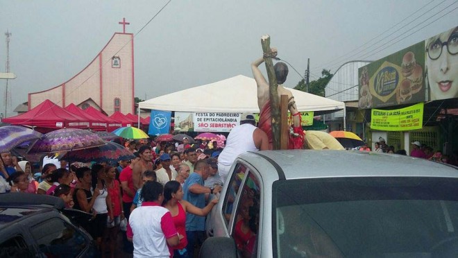 Mesmo com chuva, a Paróquia de São Sebastião em Epitaciolândia, contou com uma grande participação de fieis que foram prestigiar a tradicional procissão que passou pelas principais ruas da cidade, onde muitos puderam pagar suas promessas feitas para alcançar graças, ou pagá-las.