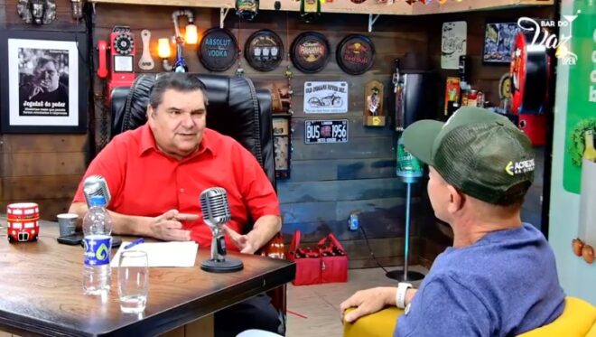 O senador Márcio Bittar (PL) fez declarações sobre as eleições de 2026 durante entrevista transmitida pelo ac24horas, nesta terça-feira (19), no Bar do Vaz, em Rio Branco. Foto: capada