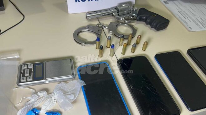 No final da tarde da última segunda-feira, cinco indivíduos, identificados como Felipe Nogueira da Silva (24 anos), Alessandro da Silva Almeida (28), José Ribamar Rodrigues Soares Júnior (31), Marcelino Ferreira da Silva (30), e Israel Brasiliano da Luz (26), foram detidos em uma operação policial na Rua Baguari, localizada no bairro Taquari, na região do Segundo Distrito de Rio Branco. Eles enfrentam acusações de tráfico de drogas, porte ilegal de arma de fogo, formação de quadrilha e receptação.