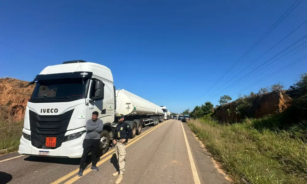 A BR-364 segue fechada nesta quinta-feira, 21, para o tráfego de veículos e longas filas de carros, caminhões e ônibus se formam no trecho da Vila Santa Luzia, no sentido Cruzeiro do Sul a Rio Branco.