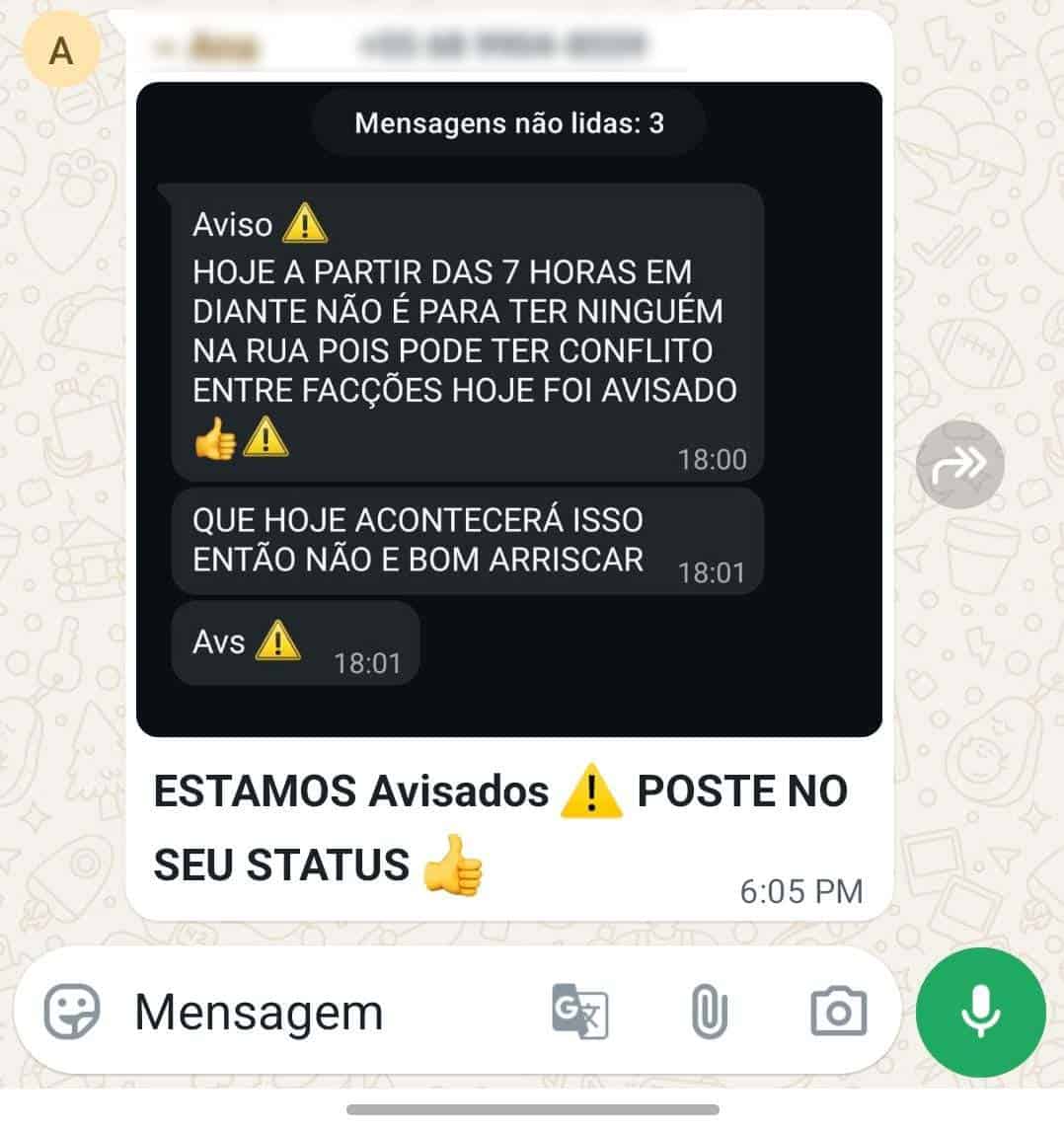 Mensagens que circularam em grupos de WhatsApp alertavam para supostos ataques a partir das 19h; Sejusp e Gefron descartam ameaça e apuram responsáveis pela disseminação da fake news