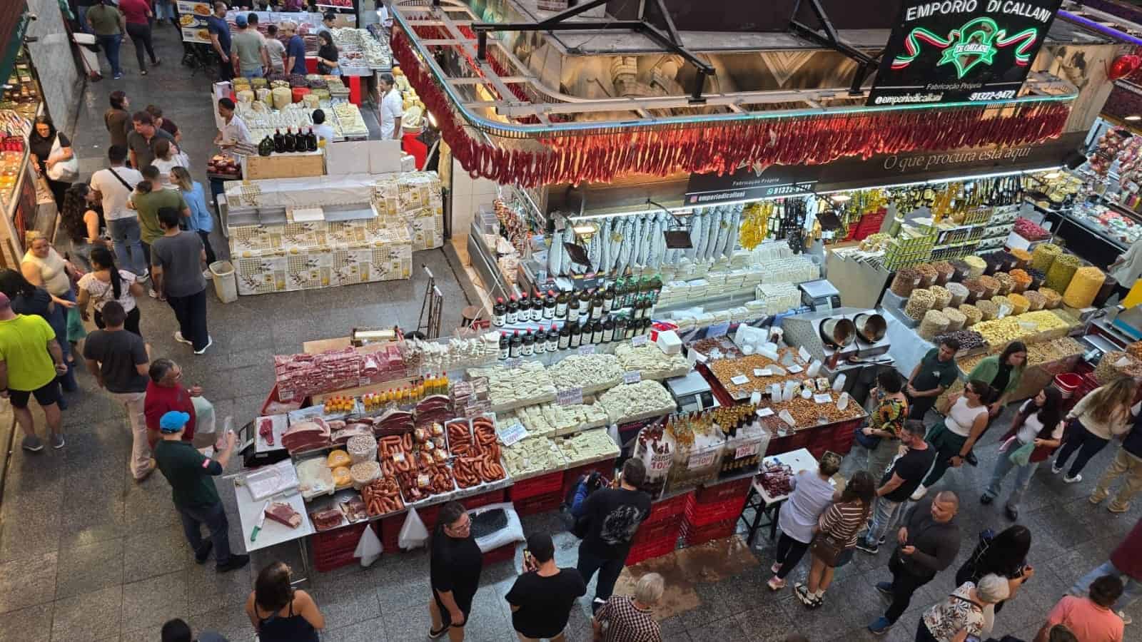 “Estamos aqui no Mercado Municipal de São Paulo. É importante gravar essa imagem para mostrar aos nossos amigos aí como é o mercado de São Paulo, já que nós estamos refazendo o Elias Mansour”, afirmou o prefeito. Durante a gravação, ele destacou a organização e divisão do espaço: “Ali é a parte térrea, e agora estamos olhando a parte superior. Na parte superior nós temos só a alimentação. Dá para observar aqui, só alimentação.”