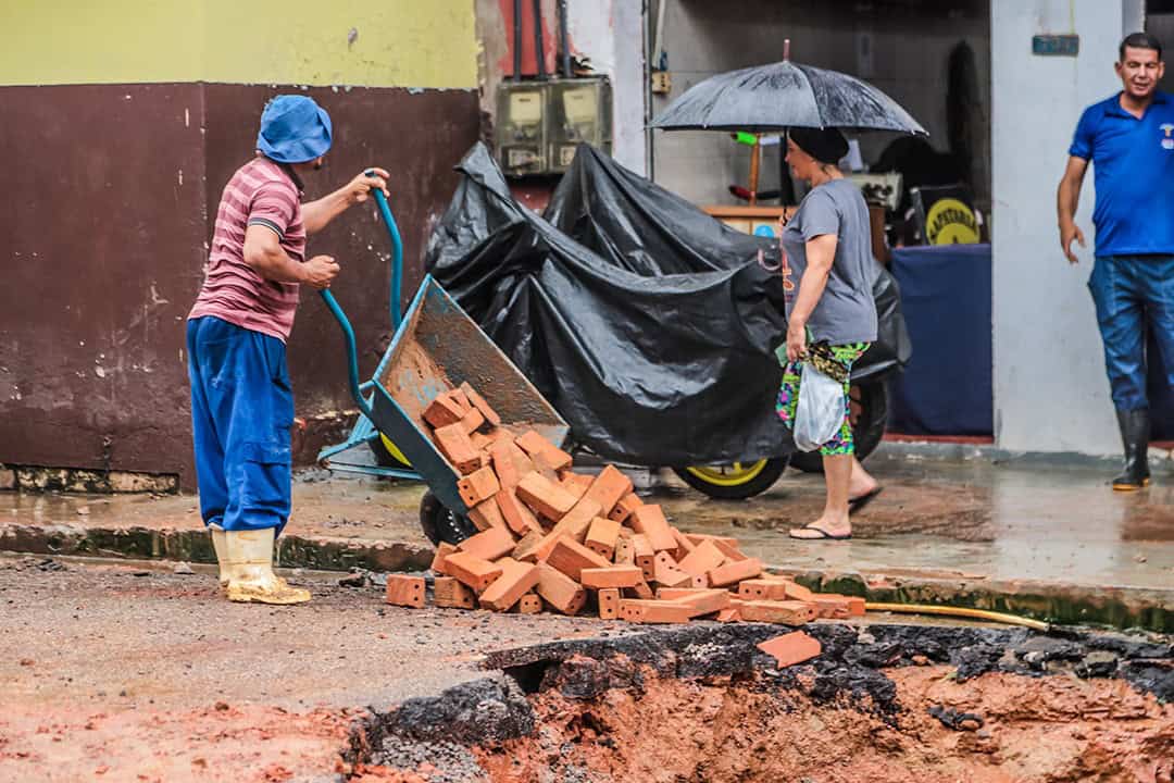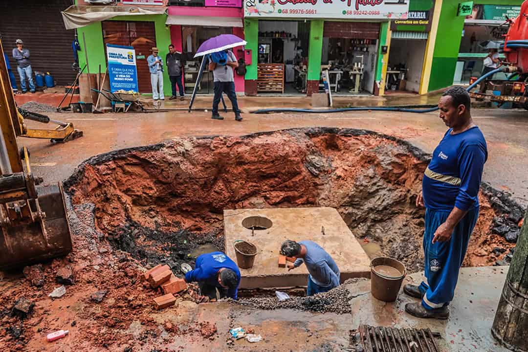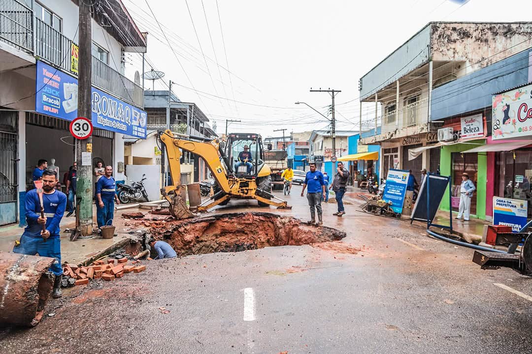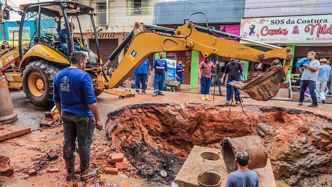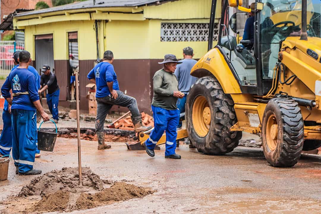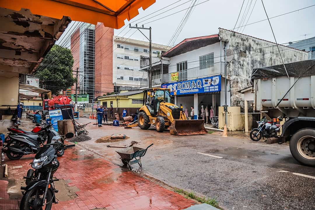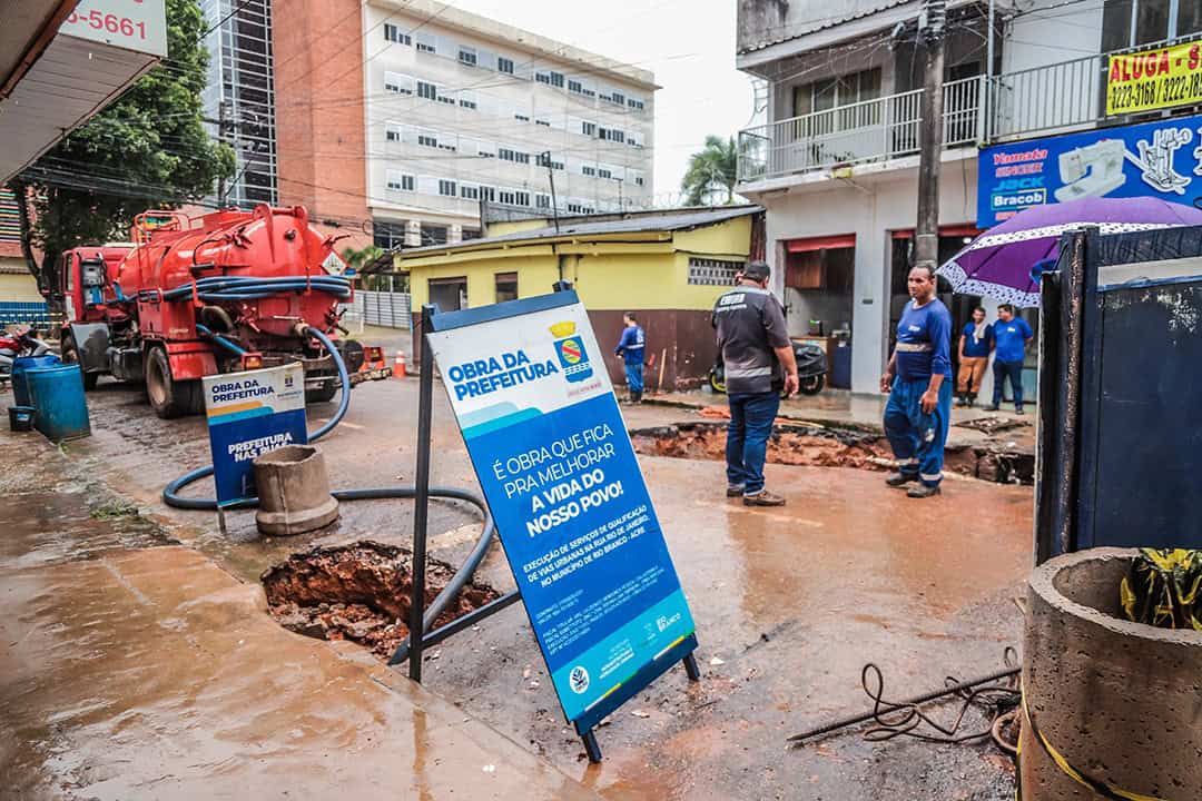 A Prefeitura de Rio Branco executa, desde a manhã desta quinta-feira (15), um trabalho integrado de desobstrução e recuperação do sistema de drenagem e esgoto na Rua Coronel Alexandrino, no bairro Bosque. A ação é resultado da parceria entre a Secretaria Municipal de Cuidados com a Cidade, a Empresa Municipal de Urbanização (Emurb) e o Serviço de Água e Esgoto de Rio Branco (Saerb).