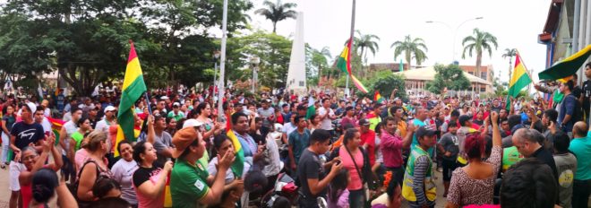 Palavras de ordem, hinos da Bolívia e de Pando foram cantados, além de se ajoelharem em frente à igreja católica, agradecendo pelo momento histórico no País. Pando é dos principais estados do País onde passou por momentos difíceis desde 2008, quando o governador da época, Leopoldo Fernandes, foi destituído pelas Forças Armadas e se encontra preso até hoje.