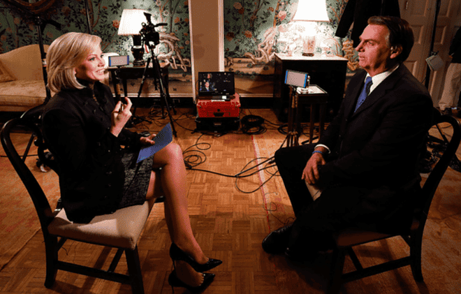 Nos Estados Unidos, a entrevista foi exibida na noite desta segunda-feira (18), já madrugada de terça (19) no Brasil. Logo no início da conversa, Bolsonaro foi questionado se teria alguma ligação com o assassinato de Marielle Franco. Em sua resposta, o presidente disse que “por coincidência”, um dos supostos assassinos mora perto da sua casa, no Rio de Janeiro, e, devido a isso, a “mídia quis estabelecer uma ligação” dele com o caso. Bolsonaro questionou qual seria o seu interesse no caso, já que não conhecia Marielle: “Que tipo de motivação eu poderia ter para ser o cérebro desse crime se eu nem a conhecia?”, disse.