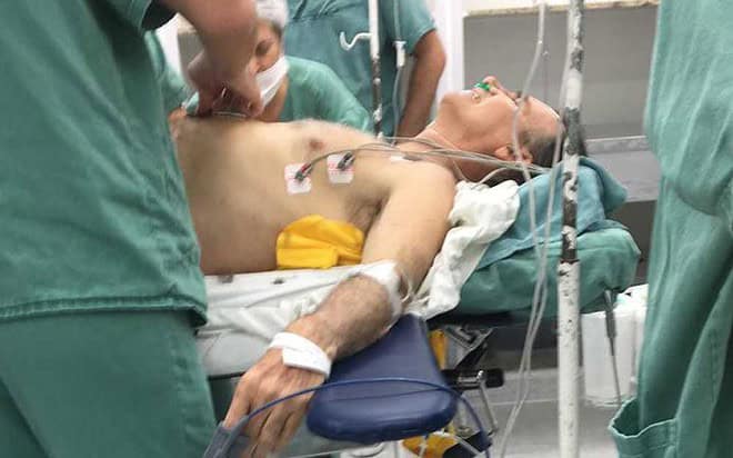 Candidato à presidência Jair Bolsonaro (PSL) é atendido em hospital de Juiz de Fora após ser esfaqueado (Foto: Arquivo pessoal/G1)