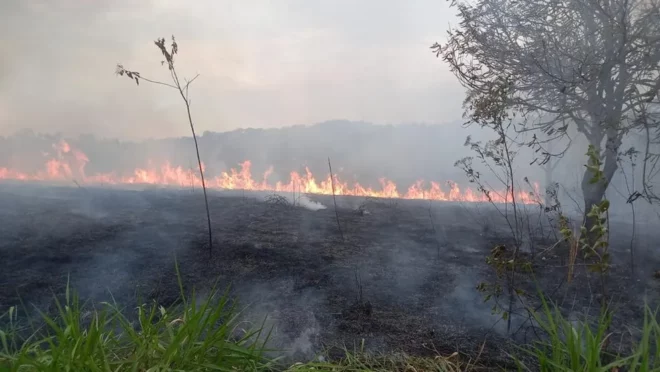 “Nesse local fica uma bomba que a gente usa para pegar água e nosso medo era de o fogo atingir essa bomba, porque estava muito alto. Ontem [segunda,3] começou por volta das 14h, aí os bombeiros foram lá e apagaram, mas depois, umas 16h, começou de novo. Os bombeiros disseram que foi criminoso, mas não sabemos quem foi colocou fogo. Foi um susto grande. A equipe terminou o trabalho lá de combate já era à noite”, disse a moradora.