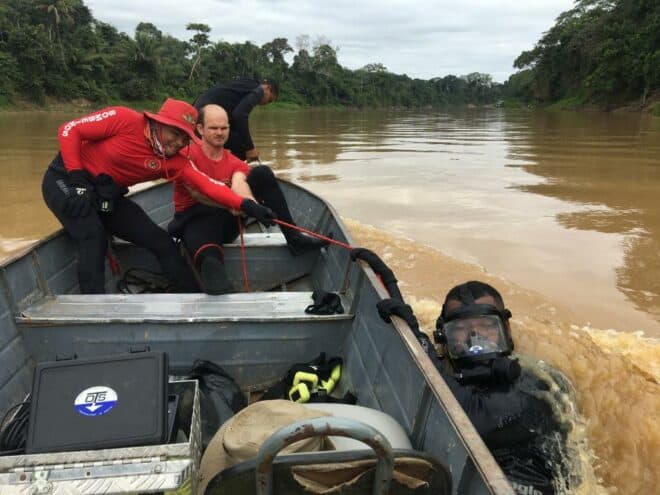 No local, foi traçado uma estratégia de buscas neste primeiro dia, sendo interrompidas às 19 horas do horário local, retornado às 07 horas desta segunda-feira, 20. Sendo que até o momento foram encontrados apenas as duas varas de pescas com os molinetes que eram usadas pelos desaparecidos. O local tem uma profundidade entre 8 a 12 metros.