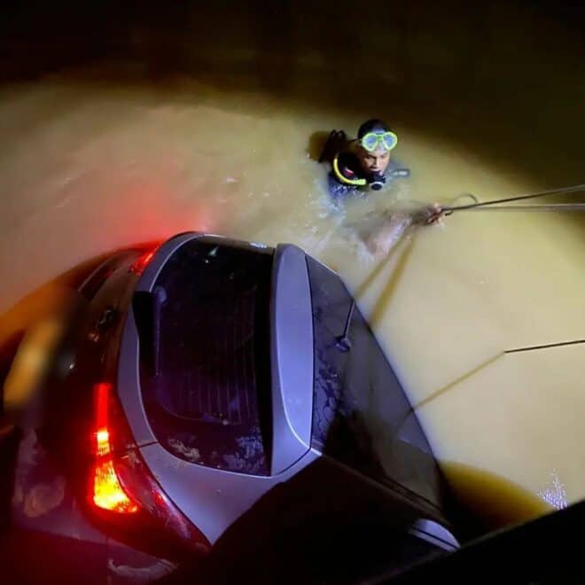 Na noite desta sexta-feira, 21, o 4º BEPCIF em Cruzeiro do Sul, foi acionado para um resgate de veículo, onde o mesmo havia caído no Rio Juruá na Travessia da Balsa de Rodrigues Alves com possíveis vítimas.
