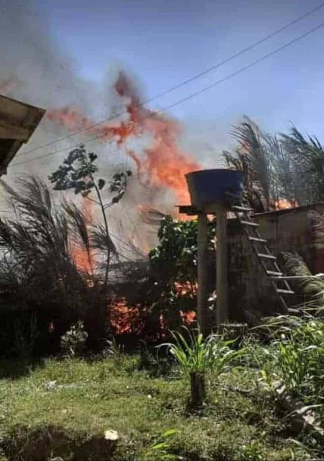 Foto registra momento de pânico durante uma queima que quase alcançou uma casa em Brasiléia - Foto: Facebook/arquivo pessoal