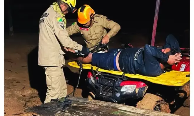 Segundo informações da Polícia Militar, a vítima apresentava suspeita de fratura na perna e precisou de atendimento imediato.