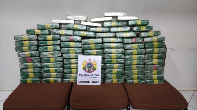 Uma equipe da Companhia Choque, do Batalhão de Operações Especiais (Bope) da PMAC, apreendeu no final da tarde desta sexta-feira, 17, cerca de 85 quilos de drogas, em uma residência no bairro Cabreúva. A ocorrência foi resultado de uma tentativa de abordagem a suspeitos, que fugiram do local abandonando os ilícitos.