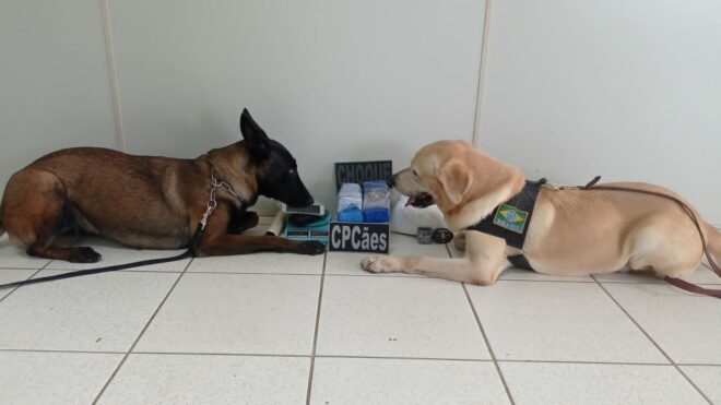 Uma equipe da Cpcães esteve no local com os cães farejadores e realizaram buscas por mais entorpecentes na região, encontrando, em uma região de mata, uma quantia de 3,876 kg de substância esverdeada, aparentando ser maconha e 1,935 kg, possivelmente de cocaína.